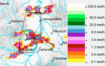 Mit den Aufzeichnungen des Wetterradars des KIT wird permanent der Himmel über Südwestdeutschland abgetastet, so dass "Hagelwolken" bereits im Frühstadium aufgespürt werden können.